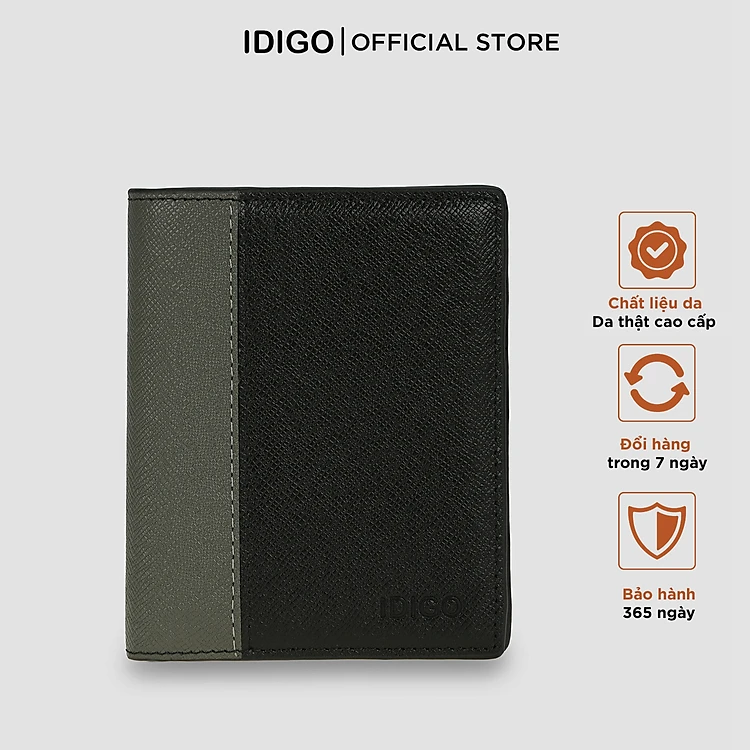 Ví da nam gập đôi phom đứng phối màu nhiều ngăn IDIGO MW1-5045