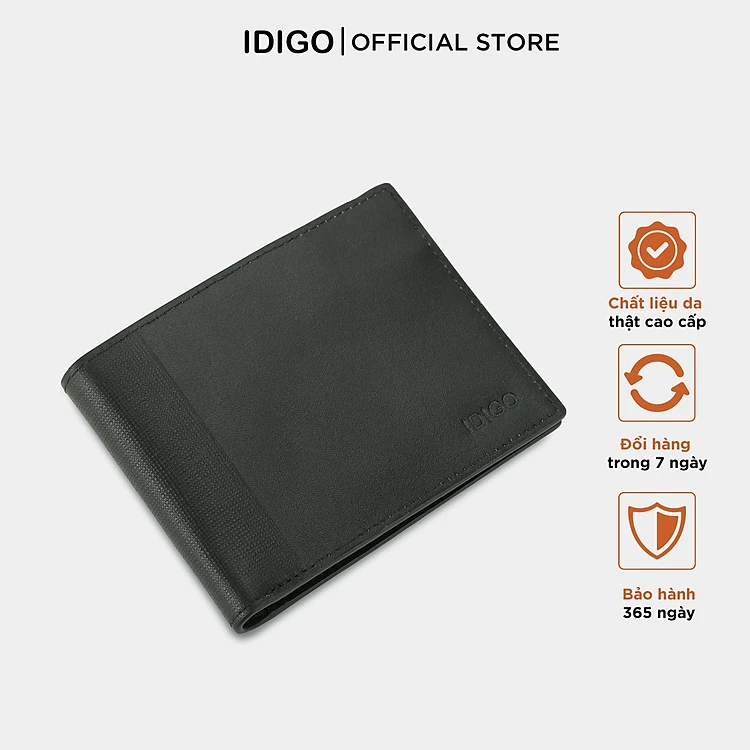 Ví da nam gập đôi phom ngang, ví nam cầm tay nhiều ngăn vân nhám IDIGO MW1-4317