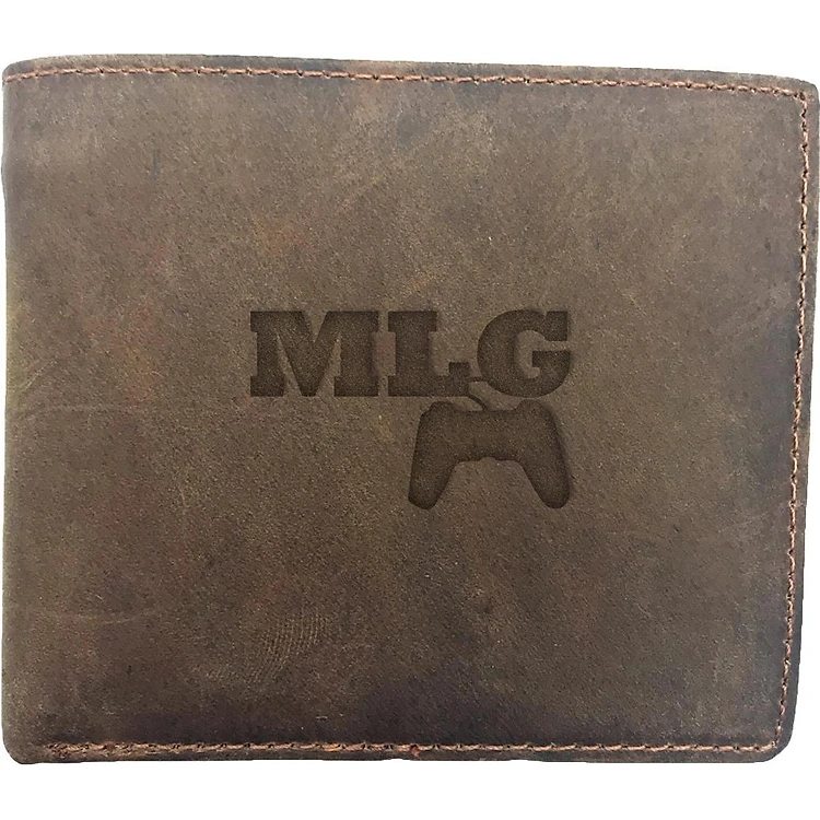 Ví Da Sáp Cao Cấp Có Ngăn Đựng Thẻ Handmade Khắc Hình Máy Chơi Game Mlg