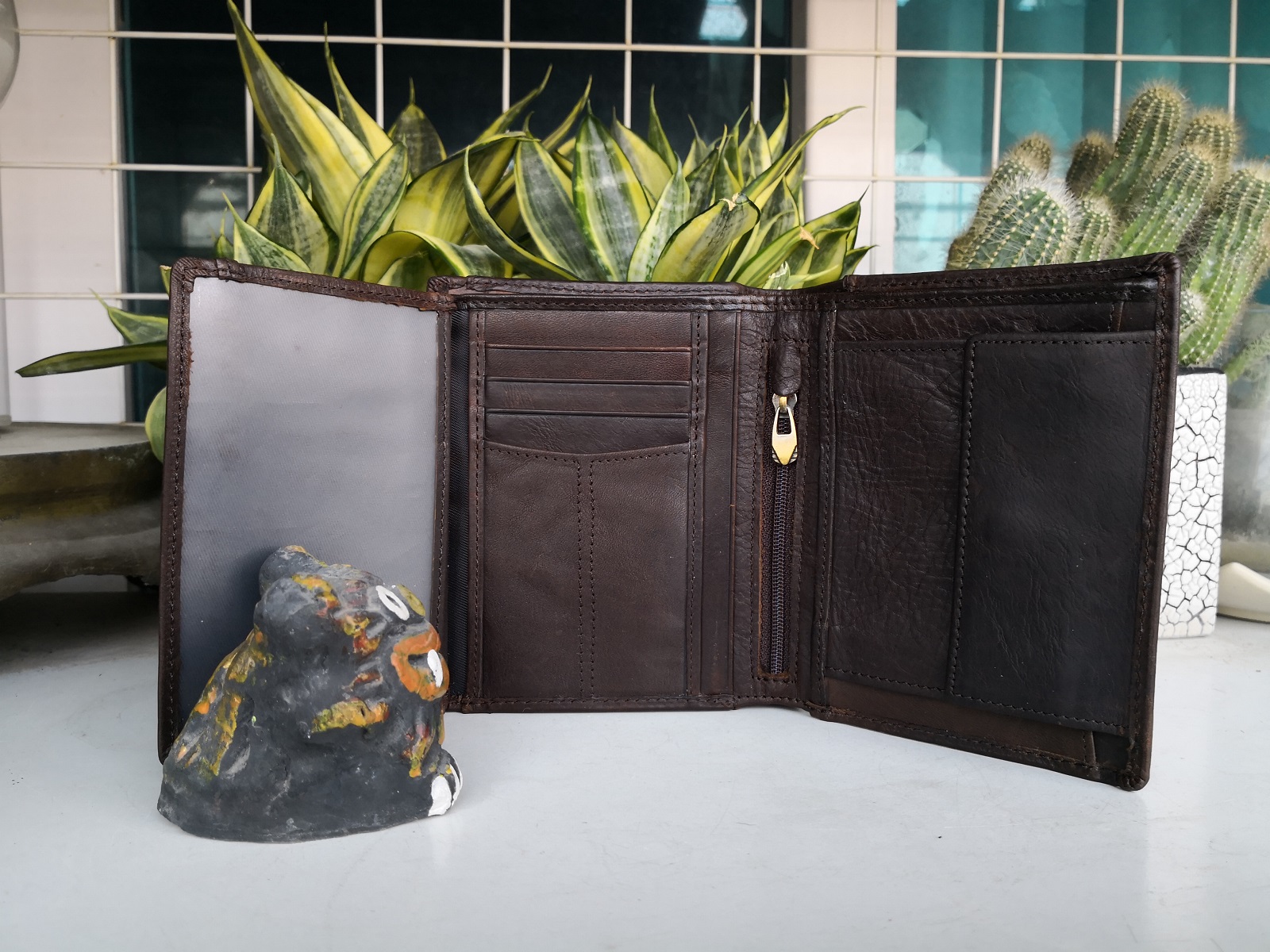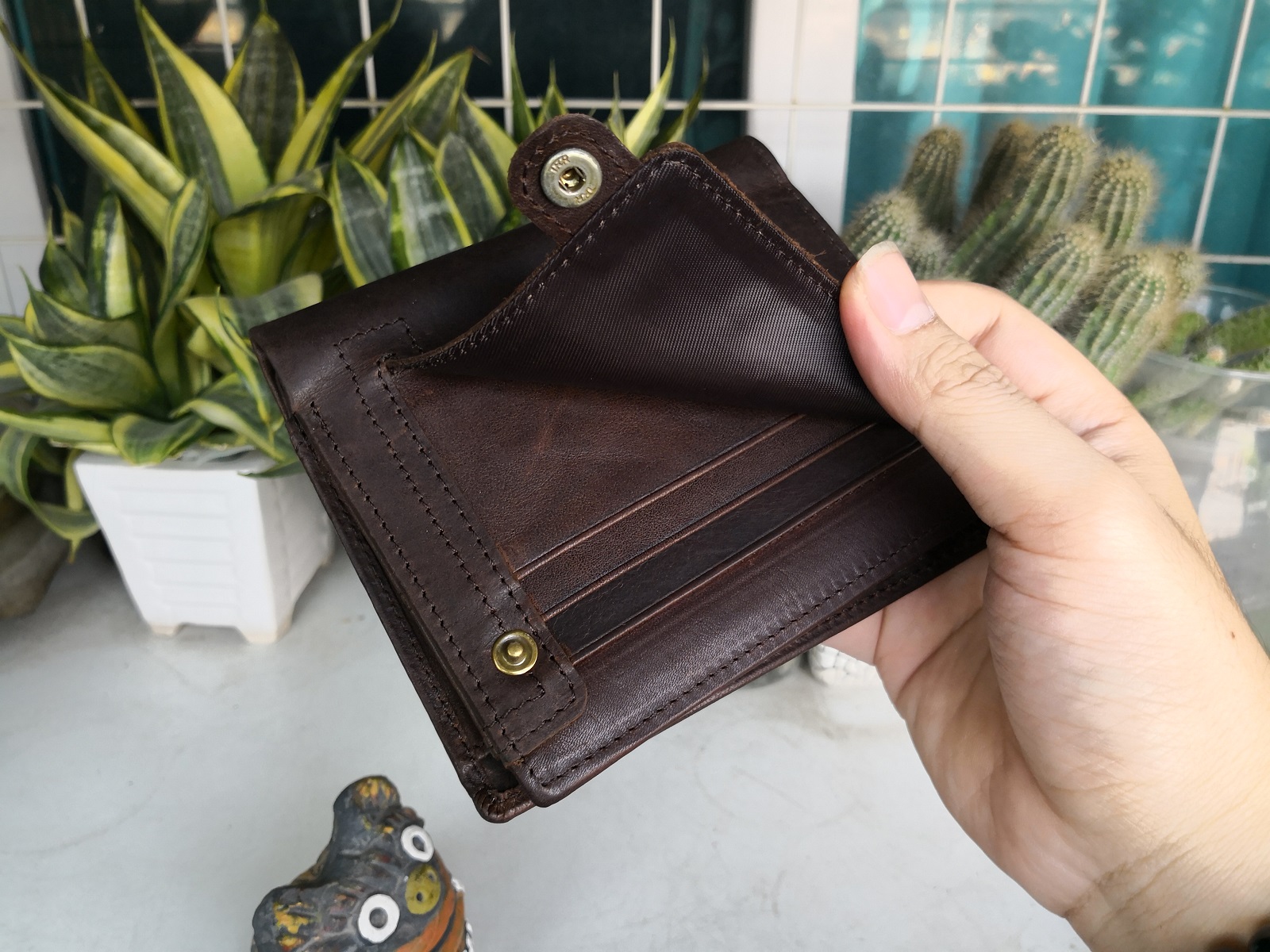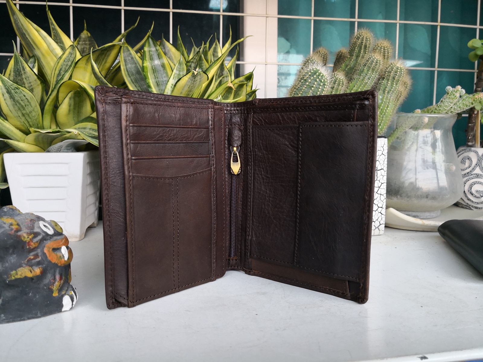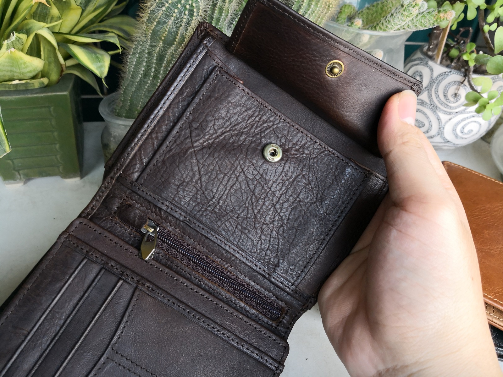 Mẫu ví cao cấp,chất da bò đẹp,gia công cẩn thận,từng đường kim mũi chỉ đều đẹp sắc xảo. Mẫu ví nhiều ngăn,ví đứng sâu lòng đựng tiền rất thích.Đựng được rất nhiều thẻ ATM,các loại