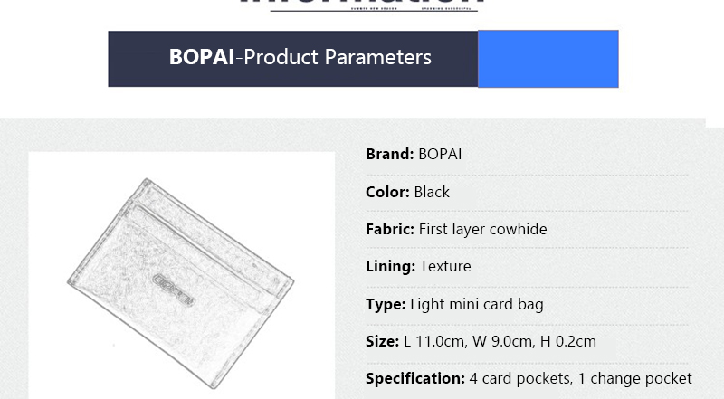 - Ví Đựng Thẻ Bopai 716-004751 bao gồm 4 ngăn đựng thẻ, 1 ngăn đựng tiền chuyên biệt.