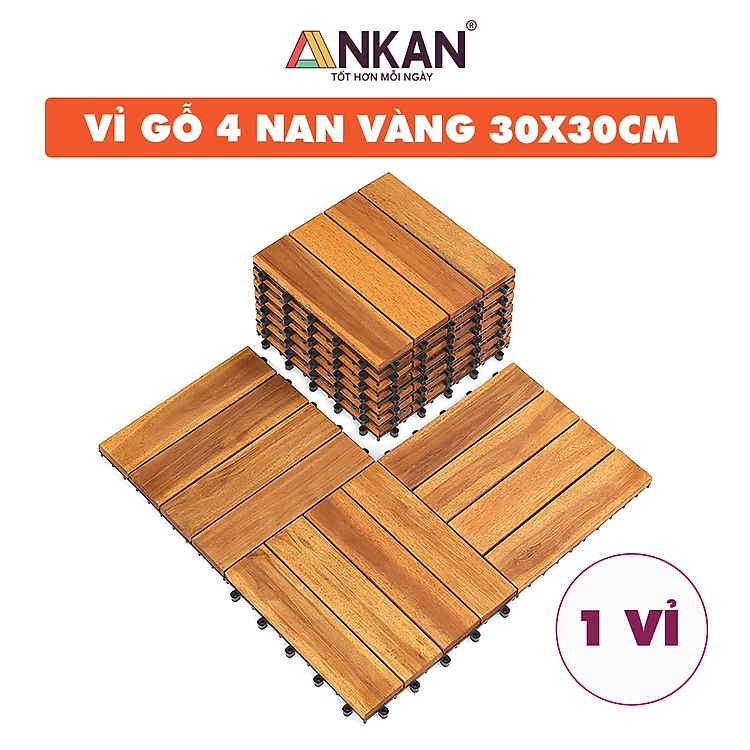 Vỉ Gỗ Lót Sàn Ban Công Cao Cấp 4 Nan – Chống Thấm, Bền Bỉ, Màu Vàng Sang Trọng