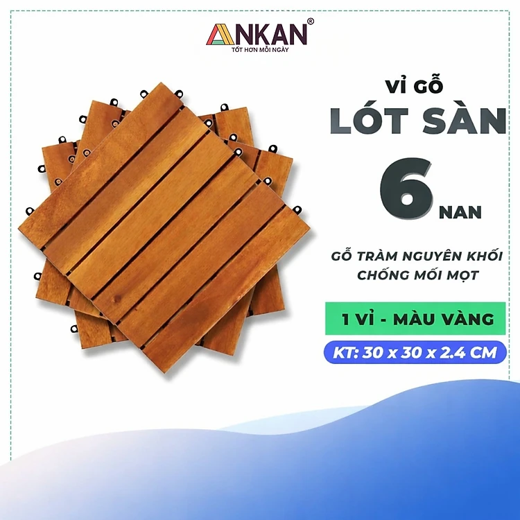 Vỉ Gỗ Lót Sàn Ban Công ANKAN 6 Nan Màu Vàng Nắng – Chống Trơn, Chịu Nước, Lót Sân Vườn, Hồ Bơi, Spa (1 Vỉ)