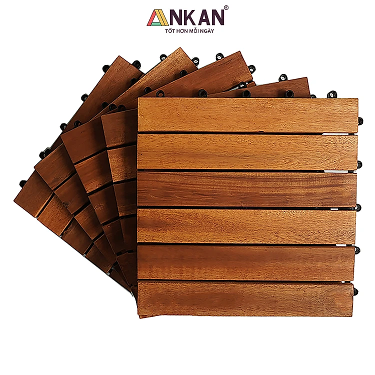 Vỉ Gỗ Lót Sàn Ban Công Thương Hiệu ANKAN Màu Vàng Nắng Loại 6 Nan, Sàn Gỗ Lót Ban Công, Sân Vườn, Hồ Bơi, Phòng Spa, Siêu Bền, Chịu Nước Tốt, Chống Trơn Trượt, Tiêu Chuẩn Xuất Khẩu (1 Vỉ)