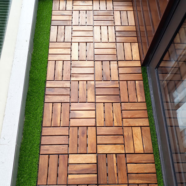 Thiết kế vỉ lót sàn nhỏ gọn 300x300mm có thể dễ dàng lắp đặt ở các vị trí trong nhà và ngòai trời như ban công, sân thượng, khu vực giếng trời, toa lét, hồ bơi, lối đi hoa viên, lối đi sân vườn,