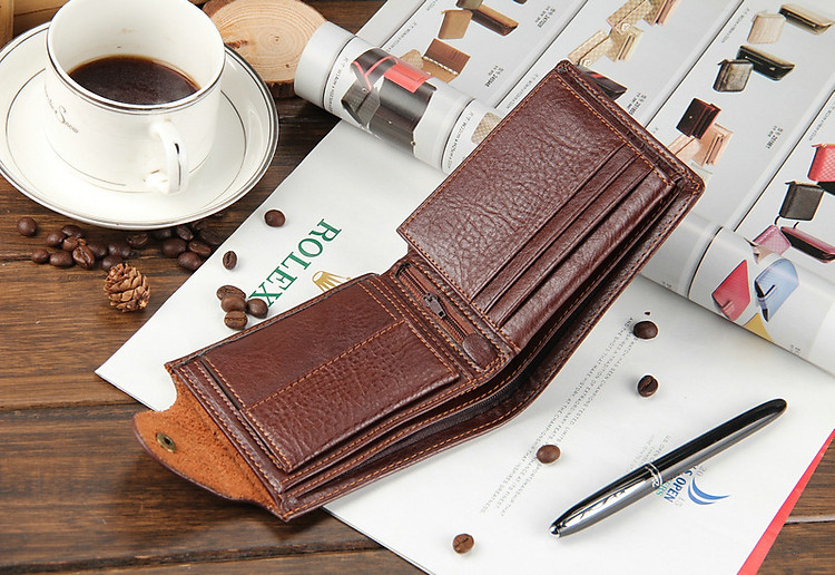 Ảnh Chụp Chi Tiết Về Sản Phẩm Ví Nam Bóp Nam Da Bò Nhỏ Gọn Dáng Đứng , Phong Cách ,Thời Trang QN - V 735