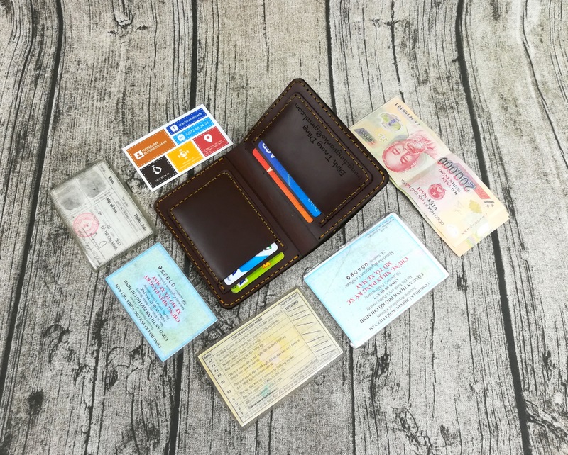 - Ví nam da bò handmade được thiết kế nhiều ngăn, có thể đựng được nhiều thẻ và các loại giấy tờ cũ mới.