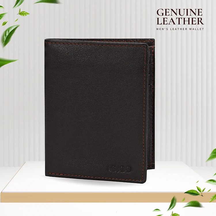 Ví da nam gập đôi phom đứng phối màu nhiều ngăn IDIGO MW1-6033