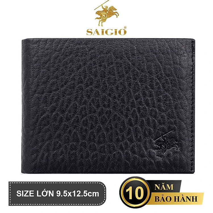 Ví Nam Da Bò Tự Nhiên In Họa Tiết Vân Da Voi , Size Lớn, Thiết Kế Cổ Điển, Đơn Giản - Mỏng Nhẹ, Dáng Ngang - Gập 2, Ngăn Đựng Tiền Có Khóa Kéo, Nhiều Ngăn Để Giấy Tờ Tiện Dụng - Hàng Chính Hãng SAIGIO