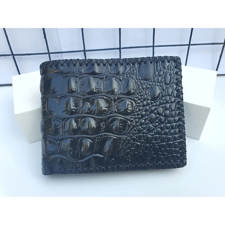Ví Nam Da Bò Vân Cá Sấu Tinh Xảo, Viền Khâu Tay Siêu Bền, Bóp Nam Vân Cá Sấu Da Cao Cấp, Được Kiểm Tra Hàng