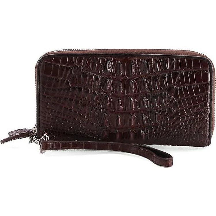 Ví nữ da cá sấu Huy Hoàng 2 khóa gai màu nâu đất HT3216