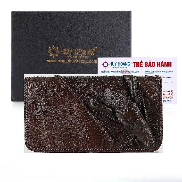 Ví nữ da cá sấu Huy Hoàng nhiều ngăn đầu cá sấu đan viền màu nâu đất HC3731
