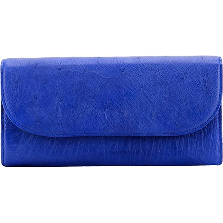 Ví Nữ Da Đà Điểu 3 Gấp Huy Hoàng HT3402 (18.5 x 9 cm) - Xanh Dương