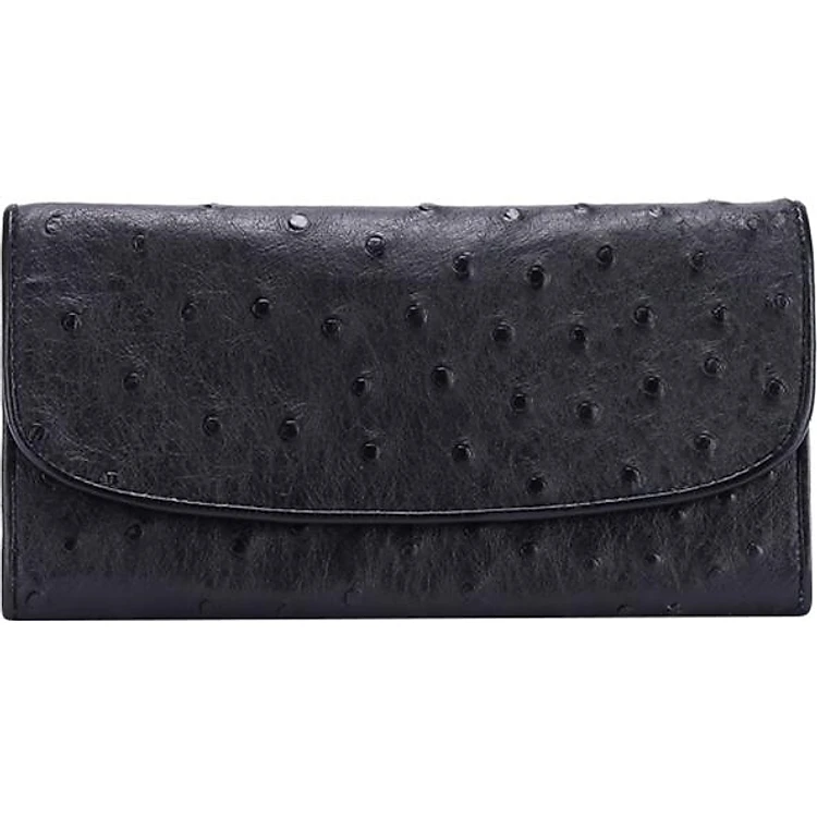 Ví Nữ Da Đà Điểu 3 Gấp Huy Hoàng HT3405 (19 x 10.5 cm) - Đen