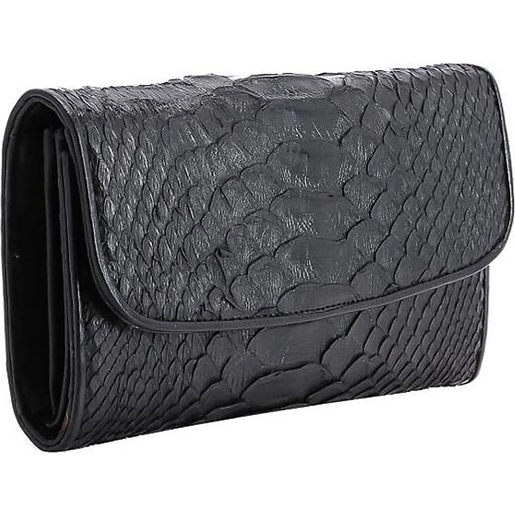 Ví nữ da trăn Huy Hoàng 3 gấp màu đen HT3329