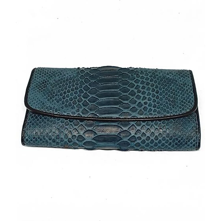 Ví nữ da trăn Huy Hoàng 3 gấp màu xanh đậm HT3334