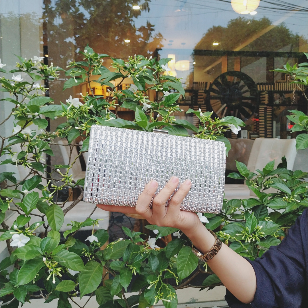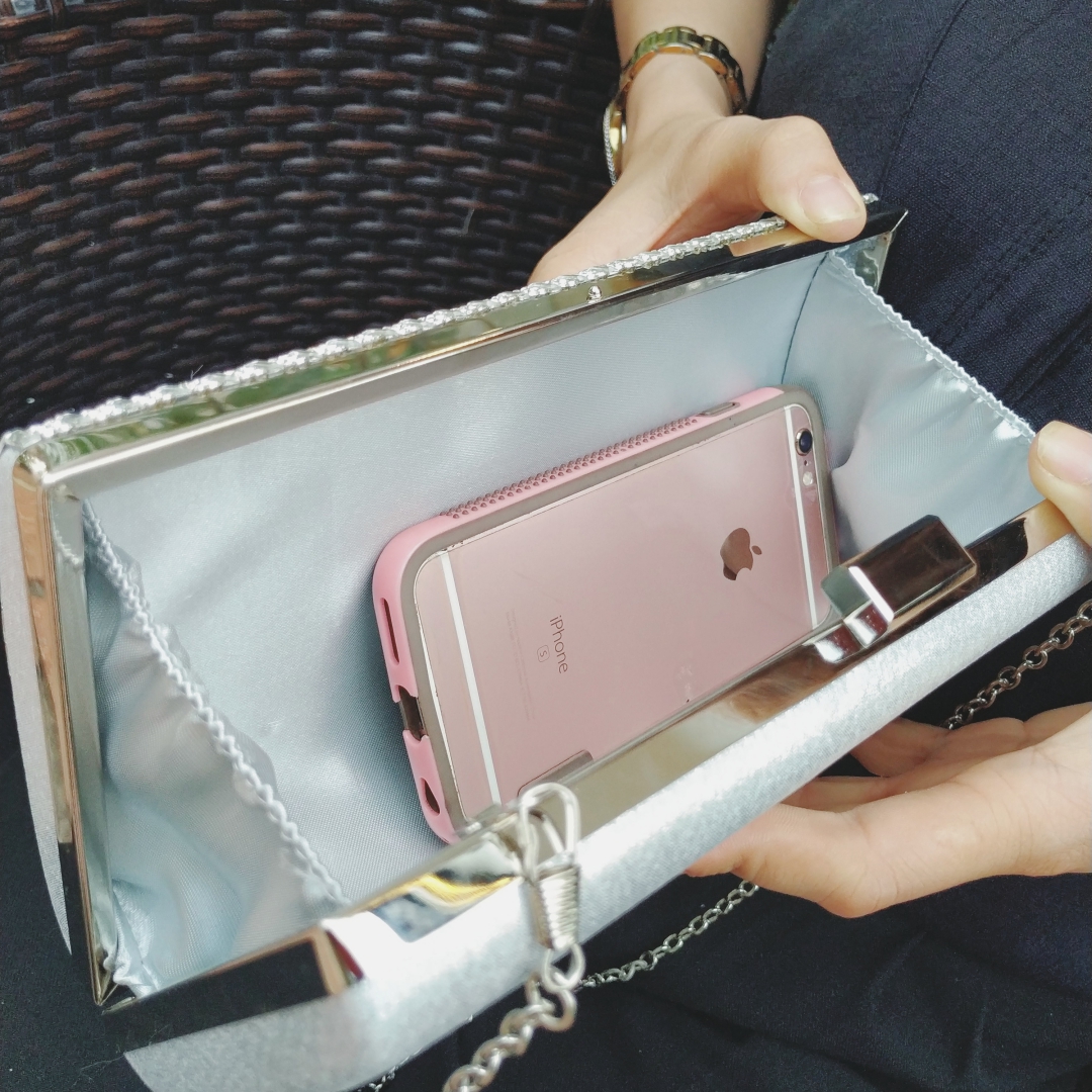 - Ví dây xích đính đá dự tiệc giúp bạn đựng được những vật nhỏ nhắn, xinh xắn như chiếc điện thoại, mỹ phẩm…