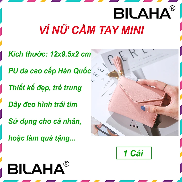 Ví Nữ Mini Ngắn Cầm Tay Phong Cách Hàn Quốc phụ kiện dây đeo trái tim (có hàng sẵn) (Hàng Chính Hãng)