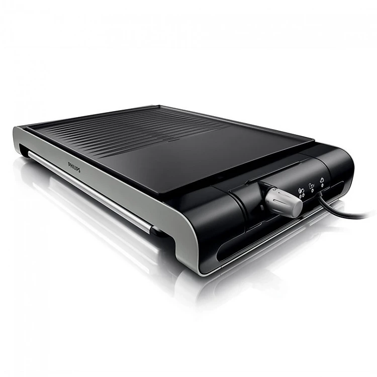 Thiết kế hiện đại, phía trên mặt nướng có khe để phần dầu thừa chảy xuống khay chứa ở ngay phía dưới. Khay chứa dầu mỡ có thể tháo lắp, di chuyển được, rất thuận lợi cho việc vệ sinh. Hơn thế nữa, nút điều chỉnh nhiệt độ giúp bạn điều chỉnh phù hợp với từng cách chế biến, đồng thời tiết kiệm điện năng một cách hiệu quả.