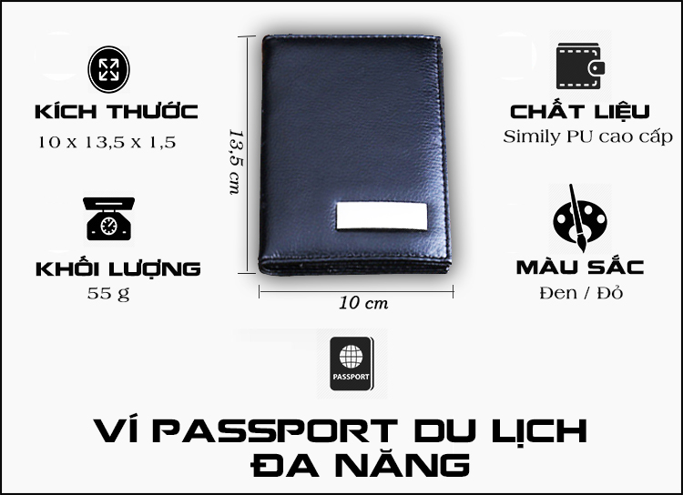 - Thiết kế 2 ngăn lớn đựng passport rộng, có thể mang kèm theo vé máy bay, tiền mặt, giấy tờ quan trọng chuẩn bị sẵn sàng cho các chuyến công tác, du lịch.