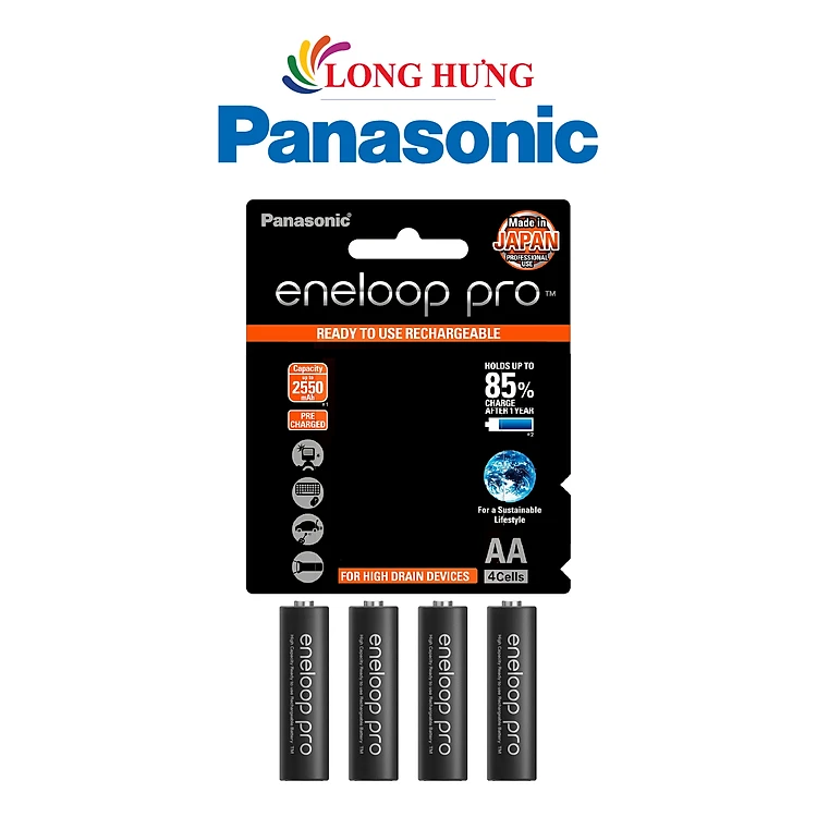 Vỉ Pin sạc Panasonic Eneloop AA 2550mAh BK-3HCCE/4BT (4 viên) - Hàng chính hãng