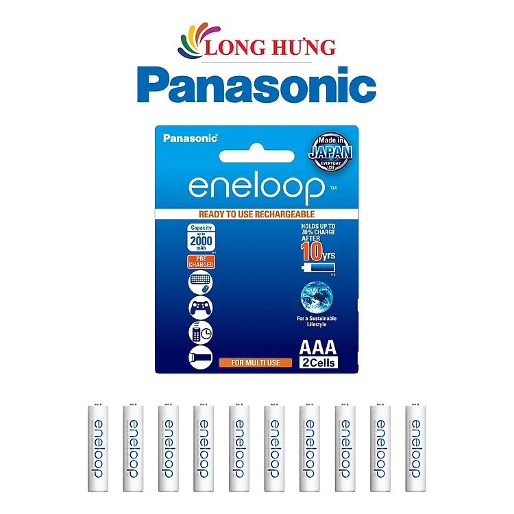 Vỉ Pin sạc Panasonic Eneloop AAA 800mAh BK-4MCCE/2BT (2 viên/10 viên) - Hàng chính hãng