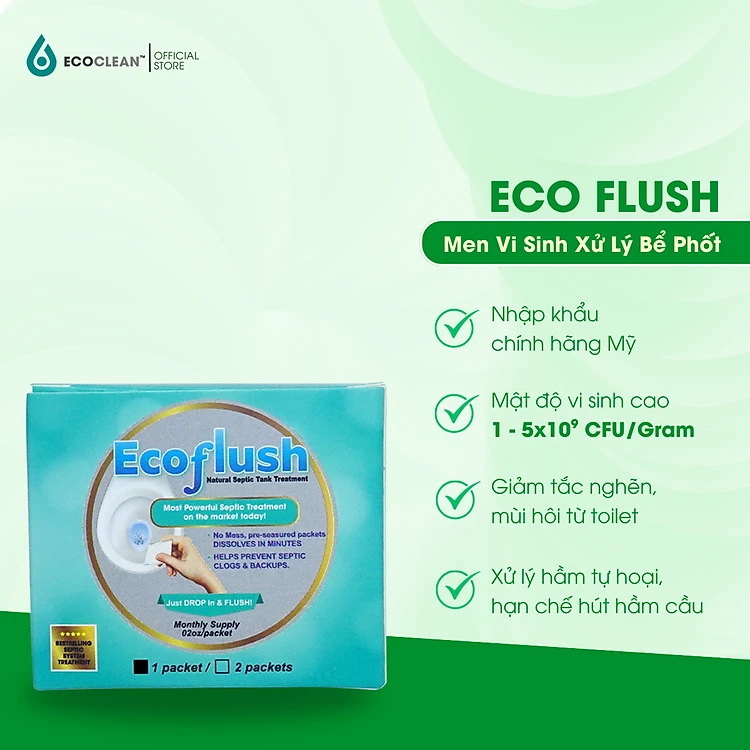 Vi Sinh Xử Lý Bồn Cầu, Bể Phốt Đầy, Tràn - EcoFlush Hộp Nhỏ - Túi Gói Sinh Học Tự Huỷ