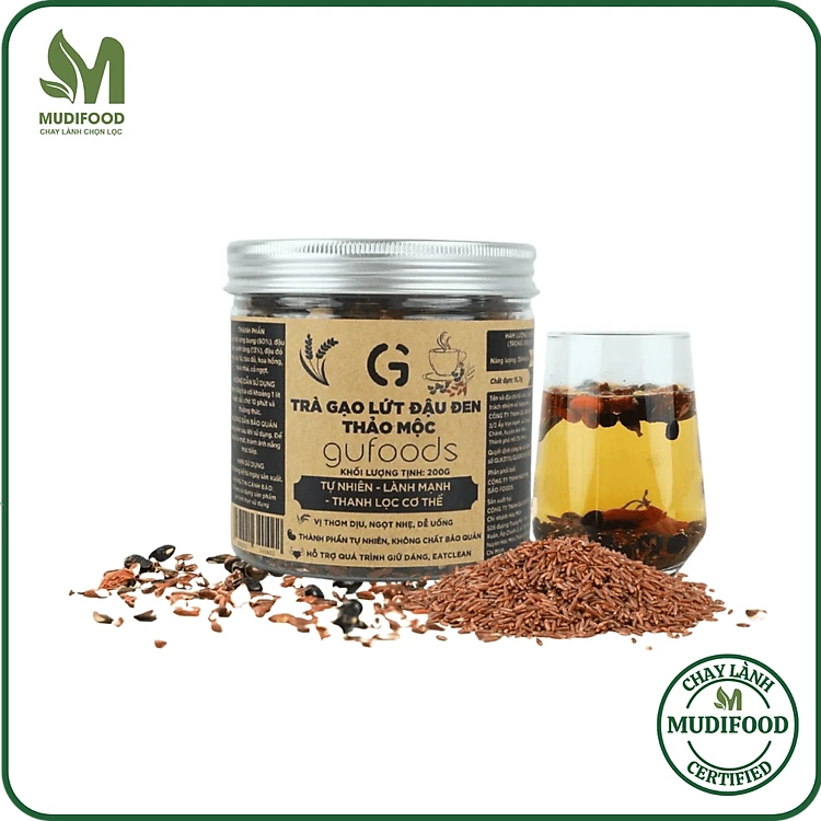 [Vị Thảo Mộc] - Trà Gạo Lứt Đậu Đen GUfoods hũ 200g/ 500g - Hỗ Trợ Giấc Ngủ, Cải Thiện Tinh Thần, Tốt Cho Sức Khoẻ