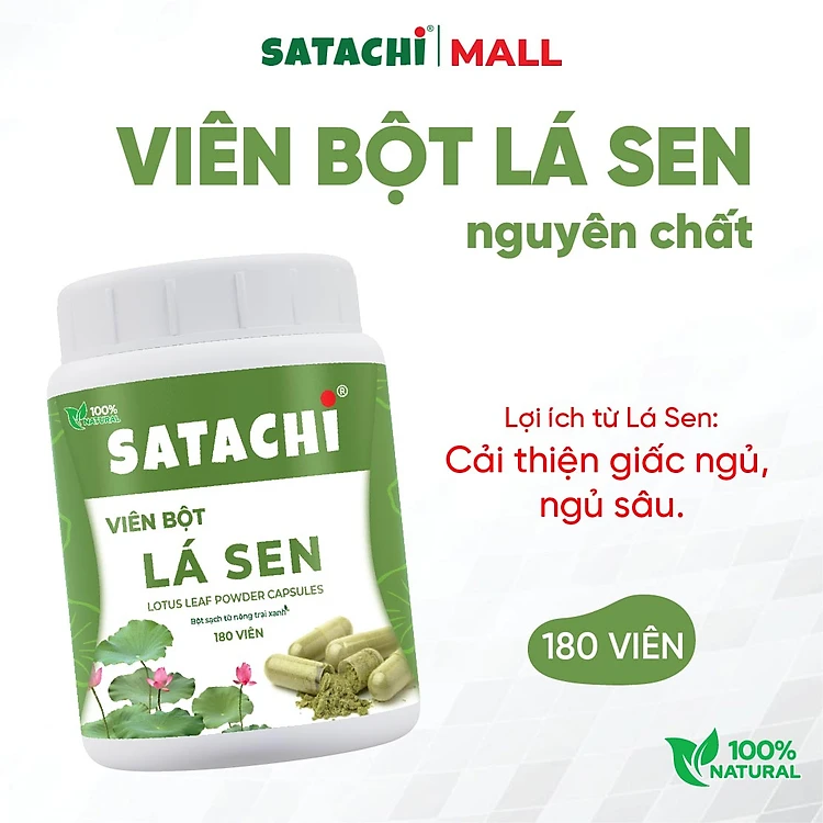 Viên Bột Lá Sen Nguyên Chất SATACHI – 100% Lá Sen – Dạng Viên Tiện Lợi – Hộp 180 viên