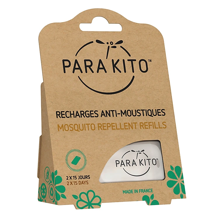 - Cách dùng: nhét 1 viên PARA’KITO™ vào bên trong của vòng đeo tay hoặc móc cài, viên PARA’KITO™ sẽ tỏa hương tổng hợp của tinh dầu, giúp phòng tránh muỗi an toàn và hiệu quả.