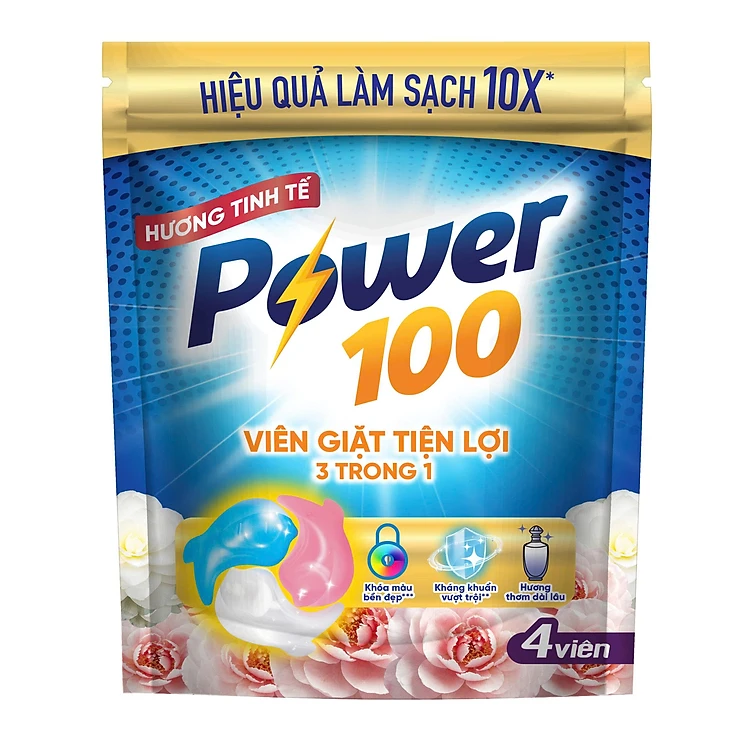 Viên Giặt Tiện Lợi Power100 3in1 Hương Tinh Tế Túi 4 Viên
