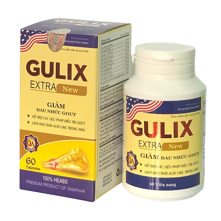 Viên Gout GULIX Extra new Vinaphar Hộp 60 Viên - Tăng cường chuyển hóa, lợi tiểu, giúp đào thải acid uric trong máu