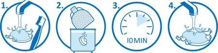 Cho khí cụ cần làm sạch vào cốc nước khoảng 10 phút. Không nên để lâu hơn thời gian đề nghị.