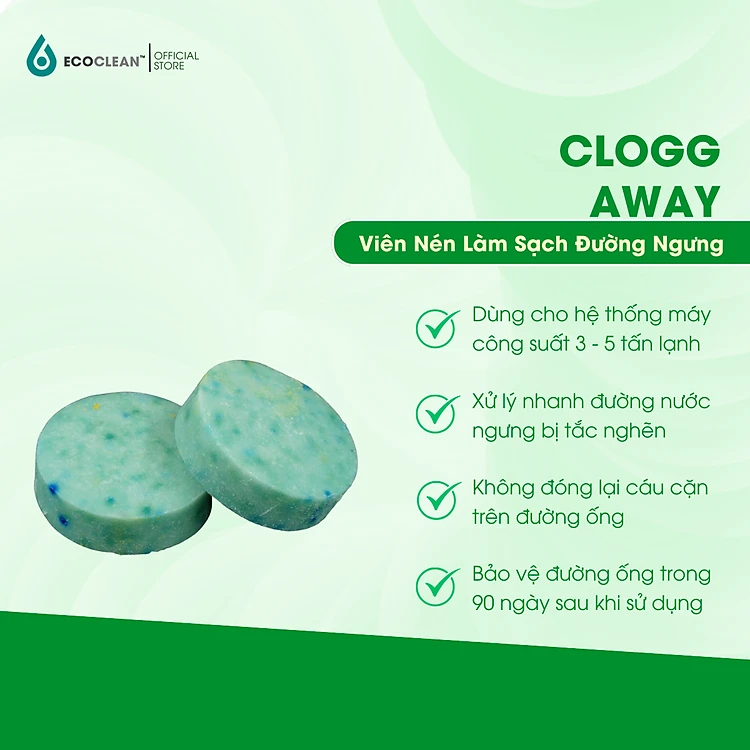 Viên Nén Xử Lý Rêu, Chất Bẩn Máy Lạnh - Clogg Away - Chính Hãng Mỹ - Sử Dụng Cho Hệ Thống Điều Hoà 5 Tấn