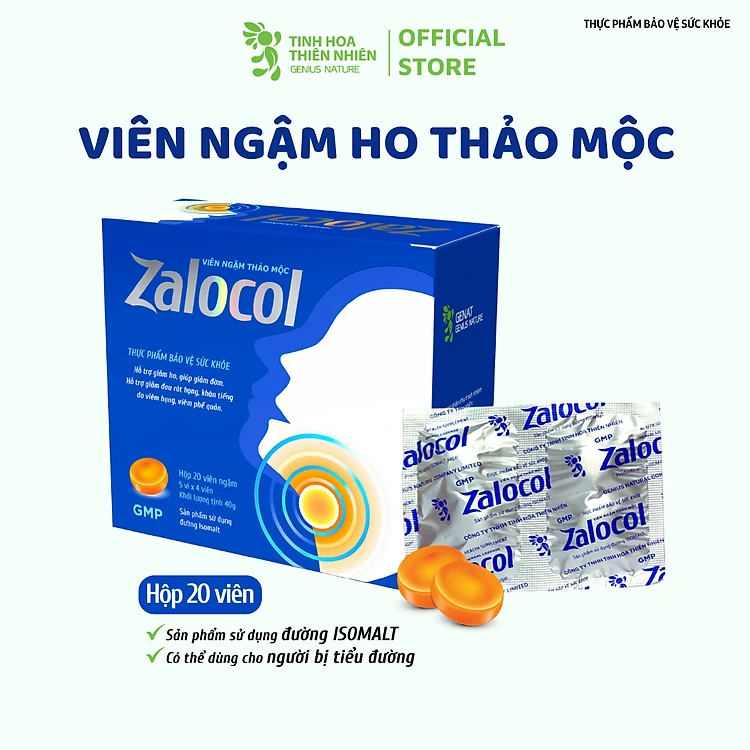 TPBVSK Viên ngậm thảo mộc Zalocol Hỗ trợ giảm ho, giảm đờm, giảm đau rát họng, khản tiếng - Genat