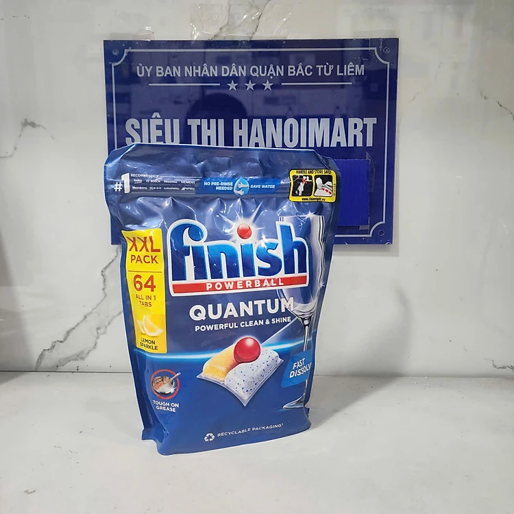 Viên rửa chén bát Finish Quantum Max 64 viên hương chanh