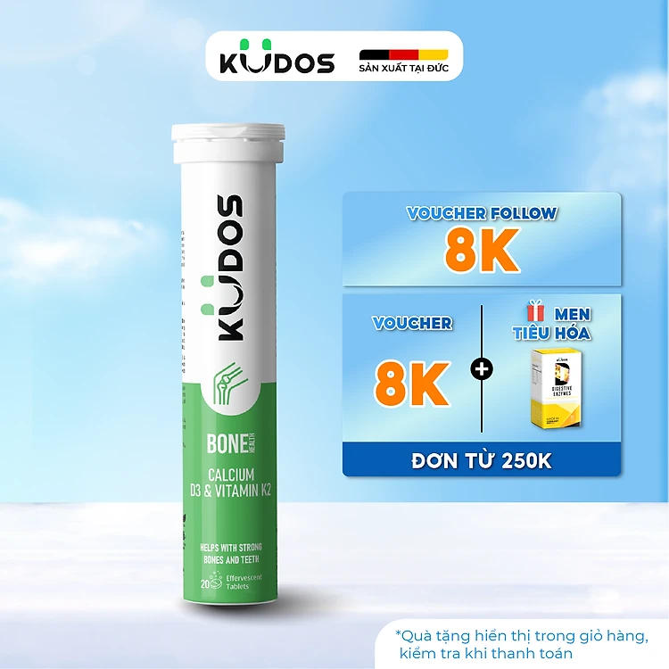 Thực phẩm bảo vệ sức khỏe KUDOS BONE HEALTH CALCIUM, D3 & VITAMIN K2 (20 viên/tuýp)