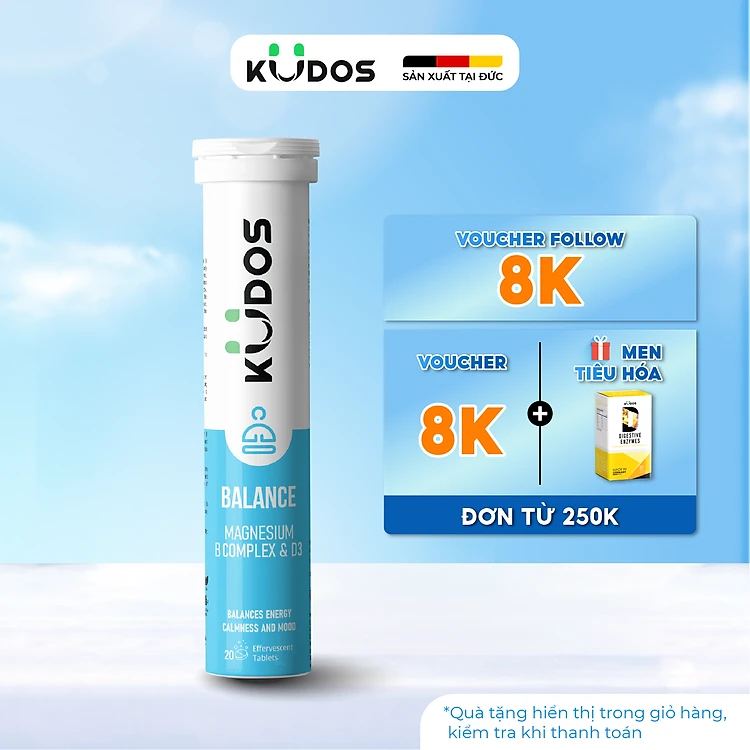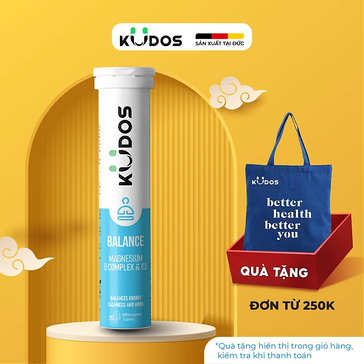 Thực phẩm bảo vệ sức khỏe KUDOS BALANCE MAGNESIUM WITH B VITAMIN COMPLEX & D3 (20 viên/tuýp)