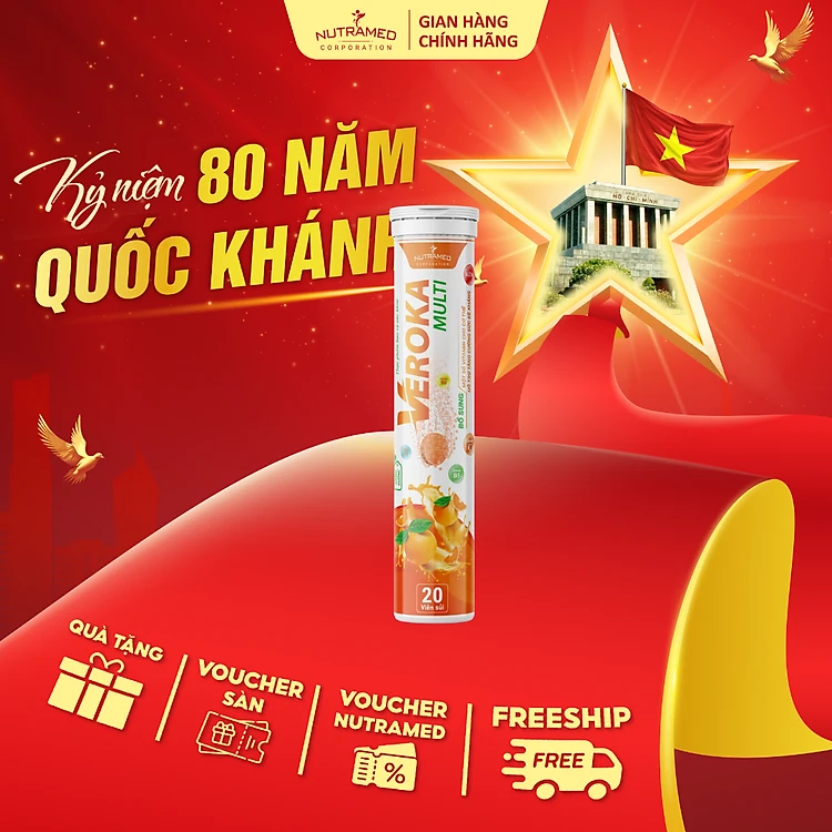 Viên sủi Veroka Multi cung cấp 12 vitamin hỗ trợ bổ sung năng lượng tăng cường sức đề kháng (20 viên) - Nutramed