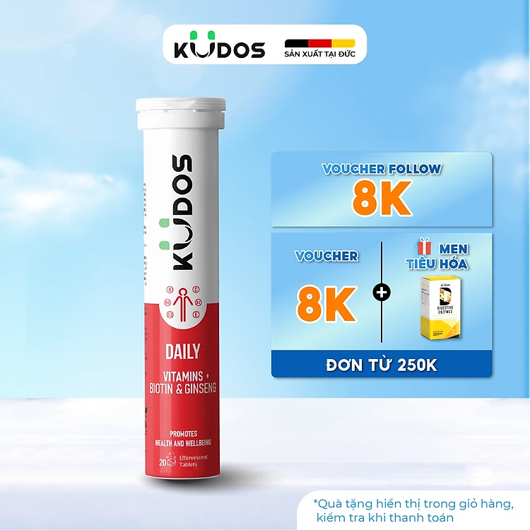 Thực phẩm bảo vệ sức khỏe KUDOS DAILY VITAMINS PLUS BIOTIN & GINSENG (20 viên/tuýp)