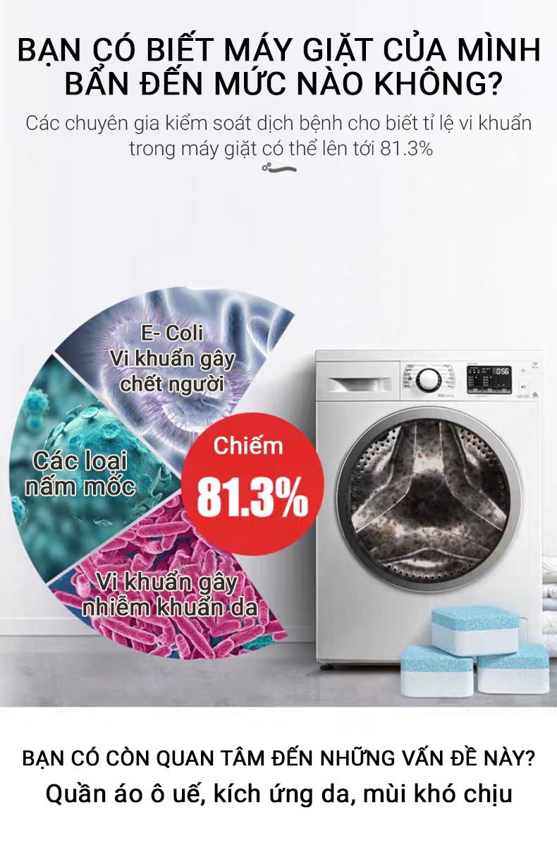 Gợi ý khuyên dùng hiệu quả cao : Lần đầu tiên vệ sinh lồng máy giặt thì xài 3-5 viên tẩy lồng máy giặt/ lần, các lần sau ( cách 1 tháng thì 1-2 viên )