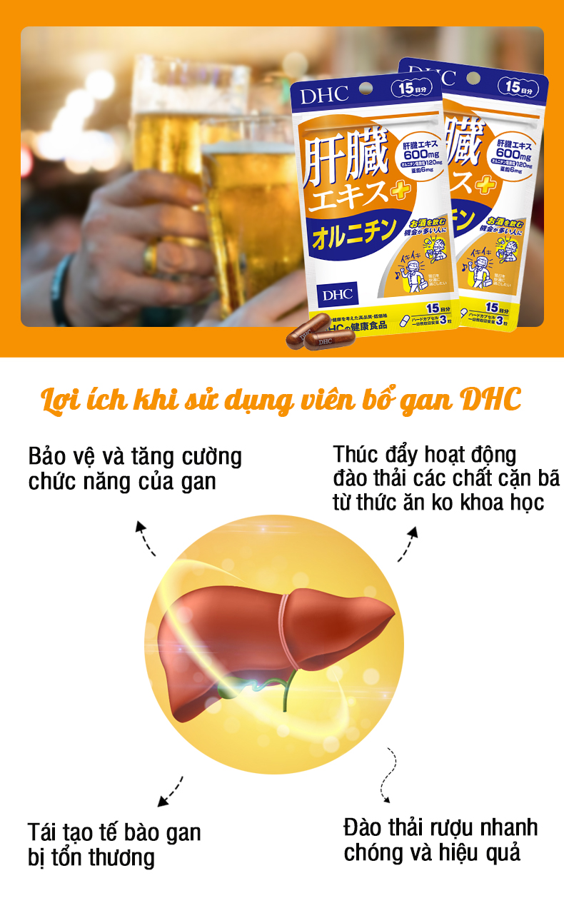 - Viên uống bổ gan DHC Liver Essence + Ornithine được nghiên cứu phát triển như là một dòng thực phẩm bảo vệ sức khỏe cho người hay uống rượu bia