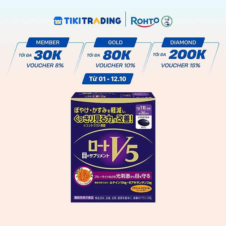 Viên uống bổ mắt Lutein Rohto V5 ( Hộp 30 viên)