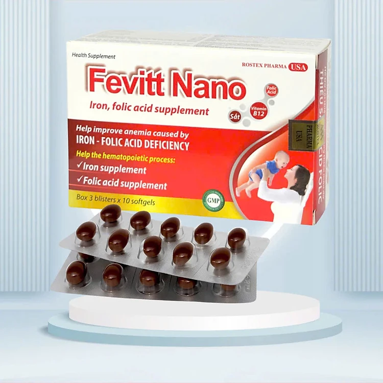 Viên uống bổ máu Sắt hữu cơ Fevitt nano, hộp 30 viên
