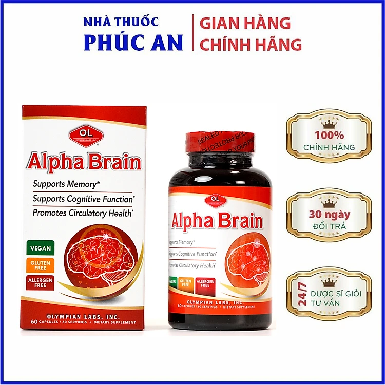 Viên uống bổ não Alpha Brain Olympian Labs Mỹ 60 viên chứa ginkgo biloba giúp tăng cường tuần hoàn não