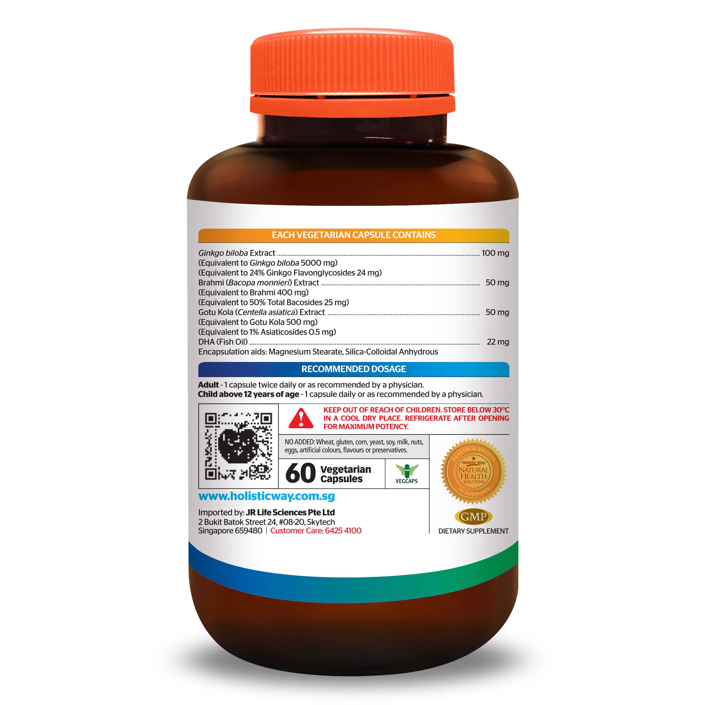 Viên uống bổ não cao cấp Holistic Way Ginkgo DHA được bào chế từ Ginkgo Biloba, DHA và các chất chiết xuất từ thảo dược tự nhiên khác như Brahmi và Gotu Kola.