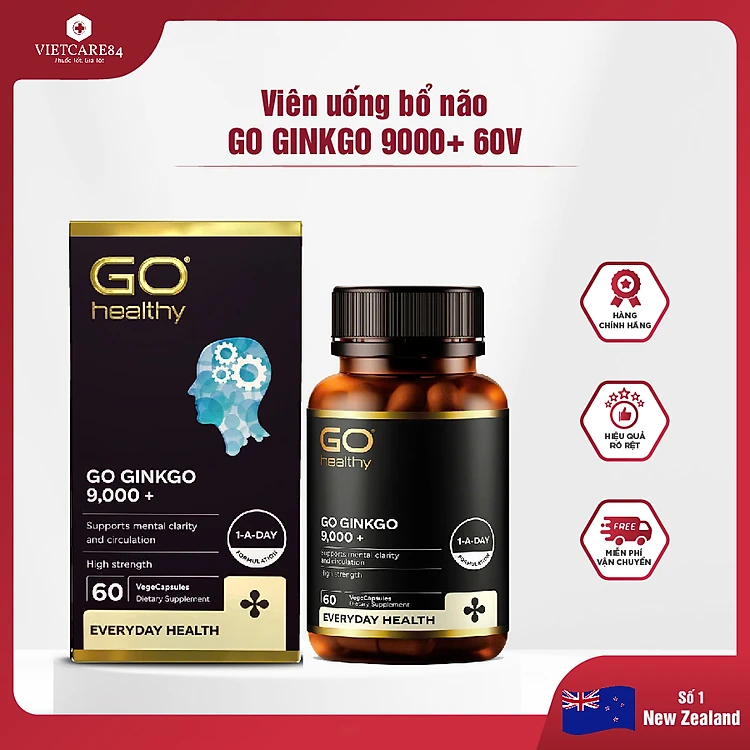 Viên uống bổ não nhập khẩu chính hãng New Zealand GO GINKGO 9000+ (60 viên) hỗ trợ tăng cường tuần hoàn não, cải thiện trí nhớ, tăng khả năng tập trung