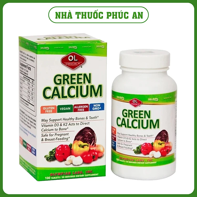 Viên uống bổ sung canxi hữu cơ cho bà bầu và mọi lứa tuổi Green Calcium Olympian Labs 100 viên