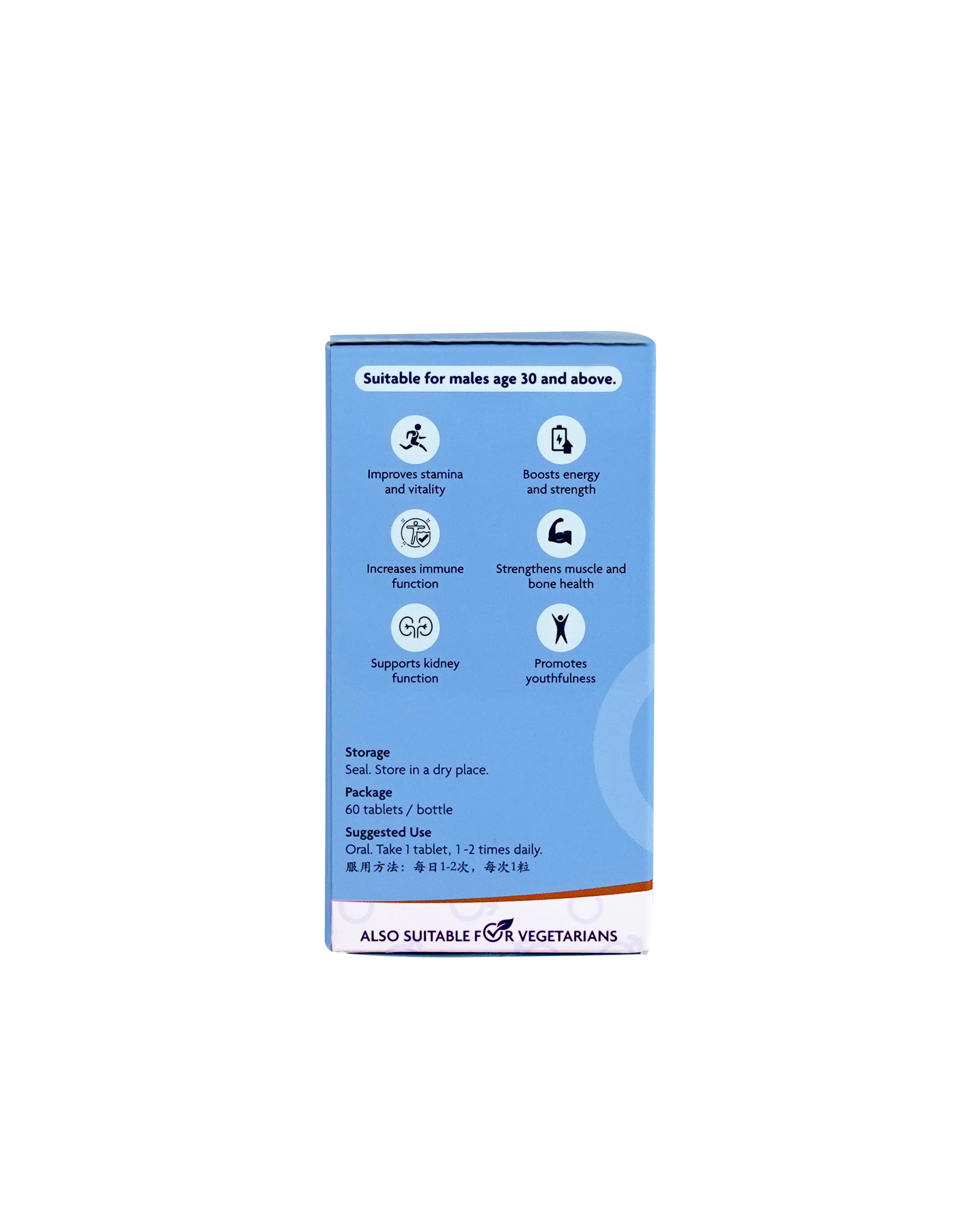 Cải thiện năng lượng của nam giới và tăng hiệu suất thể chất, sức bền và khả năng lái xe đồng thời làm giảm các triệu chứng mãn kinh. Cải thiện hiệu suất giấc ngủ và trí nhớ, đồng thời duy trì sức khỏe tuyến tiền liệt.
