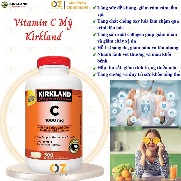 Vitamin C Kirkland Signature Mỹ tăng sức đề kháng, thức đẩy sẩn xuất collagen tự nhiên, sáng da, mờ thâm,nhanh lành bệnh - OZ Slim Store